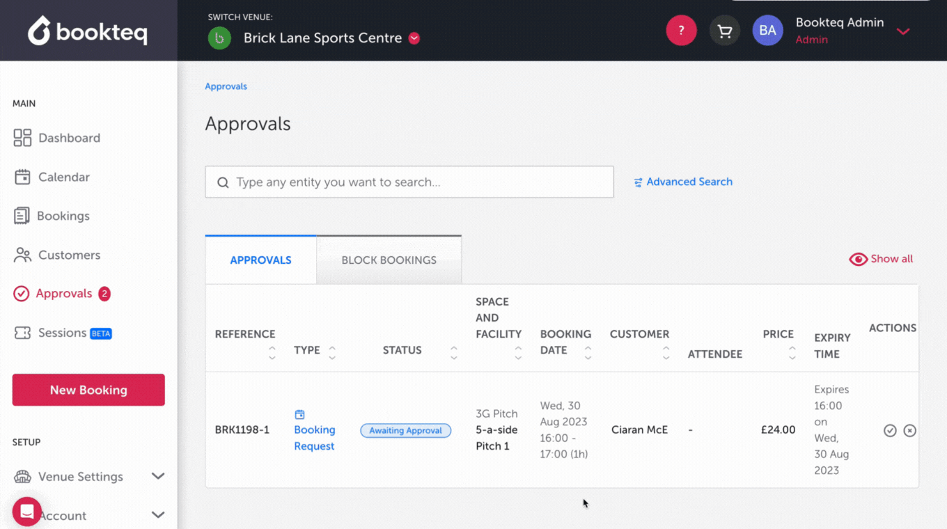 Hirers can make a booking through your online widget but it won’t be confirmed until you’ve approved it. The approvals feature helps you stay in control and gives you time to make arrangements, like sorting staffing and equipment, to fulfil the booking for your hirers.