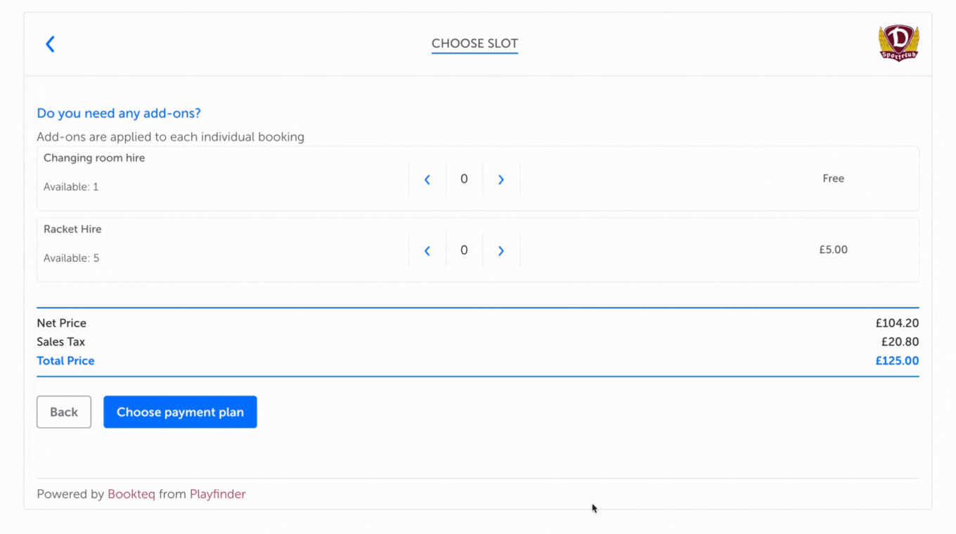 Maximise your customers booking experience, whilst maximising potential revenue by using add-ons to hire out your equipment or offer catering. From racquets to projectors, from catering to floodlights, you can offer the best experience for your hirers, making sure they have everything they need for their booking – increasing your revenue as a result.